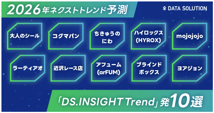 「ネクストトレンド予測2026」は、LINEヤフーが提供する事業者向けデータ分析サービス「ヤフー・データソリューション」により、Yahoo!検索における膨大なビッグデータを解析し、翌年以降にヒットが期待されるキーワードを予測するものです。